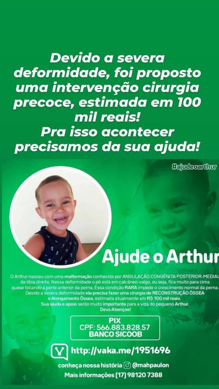 Conheça a história do Arthur: Instagran @mahpaulon