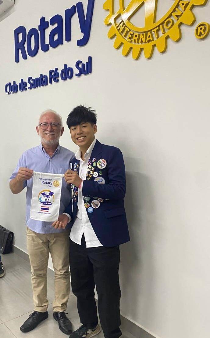 Nosso Presidente, Celso Sicuto, fez questão de presentear os visitantes com a flâmula do Rotary Club de Santa Fé do Sul (Distrito 4480) 2025/2026 e realizou troca de flâmulas com o intercambista Lincoln e a Interactiana Nicoly, simbolizando a amizade e a união entre os clubes e as novas gerações do Rotary.